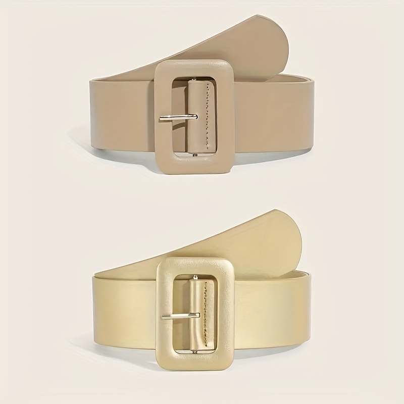 TEMU 카키+골든 투피스 벨트 세트, 패셔너블 허리띠, 두 팩의 벨트 슈트, 드레스 및 탑 장식용 버튼 허리띠, 고급 느낌을 보여주는 와이드 벨트
