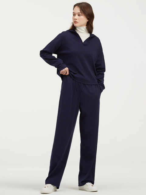 하이웨이스트 니트 울 와이드 레그 팬츠 롱 기장 드로스트링 스트레이트 캐주얼 루즈 슬리밍 가을 겨울 패션 여성용