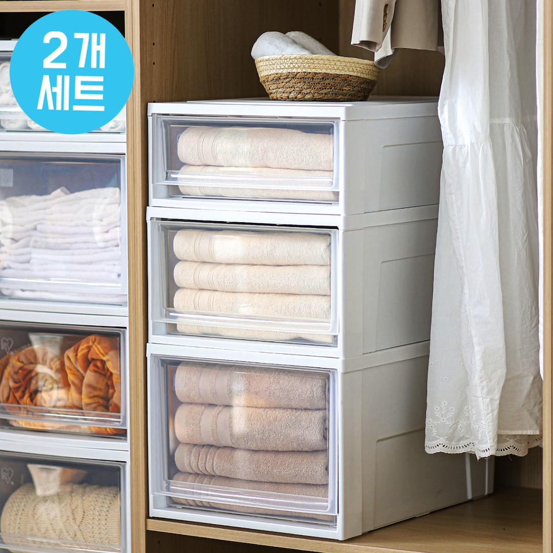 2개 세트 수비르 서랍장 슬라이딩 리빙박스 옷 수납 옷장 정리함 7size