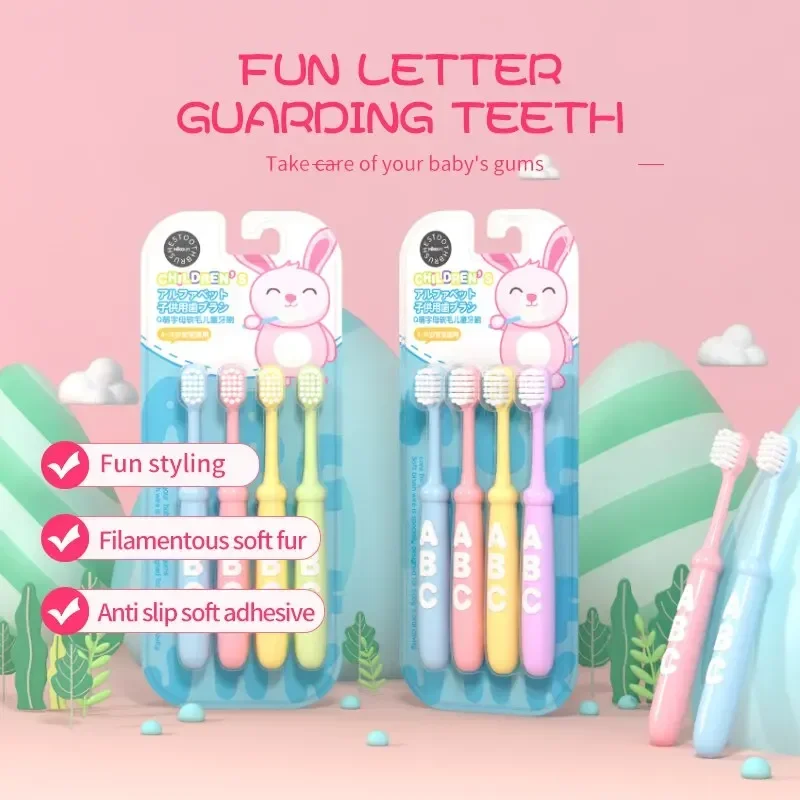 4PCS 알파벳 만화 부드러운 칫솔모 어린이용 칫솔, 3-12세 어린이에게 이상적 - 사랑스러운 디자인 및 효과적인 세척