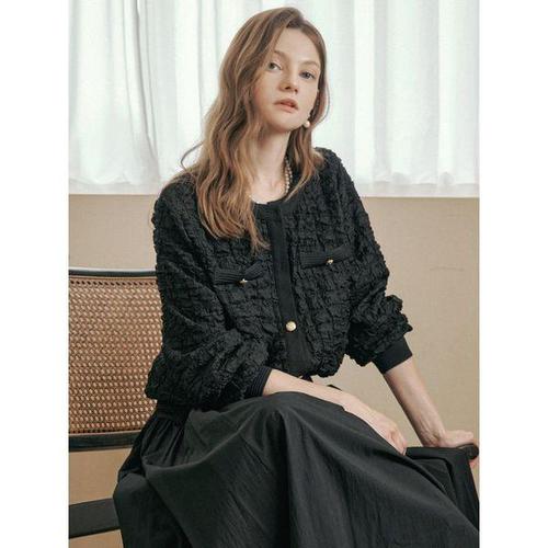 [마쟈]엠보 트위드 골드버튼 라운드넥 가디건 자켓