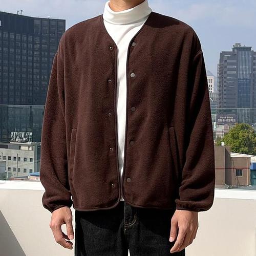 [더맨쉽][더맨쉽] 노카라 후리스 솔리드 가디건 자켓
