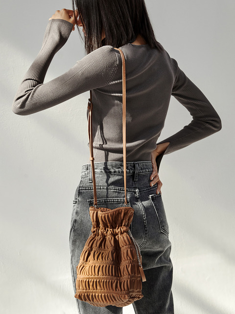 [잇츠백] 가벼운 체인 핸들 주름 버킷백 6컬러