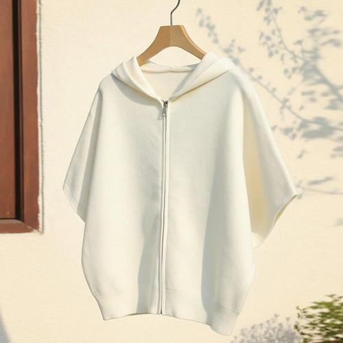 여성 무지 가오리핏 7부 후드 니트 집업 가디건 DGB-WCD-5106-아이보리