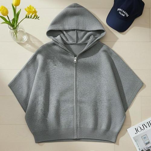 여성 무지 가오리핏 7부 후드 니트 집업 가디건 DGB-WCD-5106-그레이