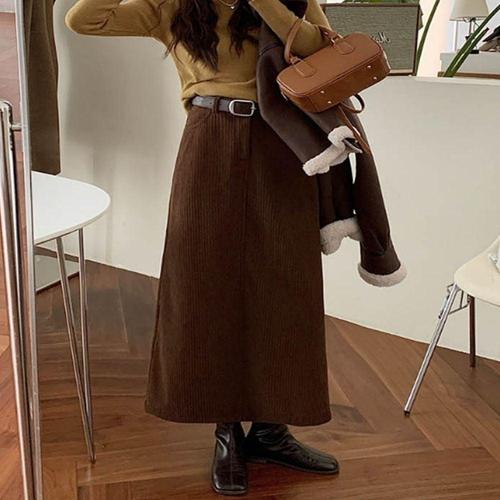 여자 2컬러 가을 겨울 도톰한 골지스커트 롱스커트 WFKN4LZ
