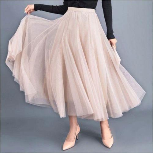 [옷자락]여성 사계절 이중 레이어 롱 스커트 봄가을용