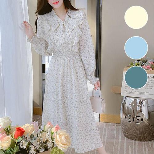 [오너클랜]인기상품 꽃무늬 긴팔 롱 드레스 밴딩 프릴 러플 봄가을 원피스 [WE21E86_250917]