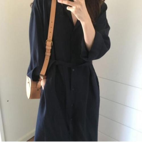 이너 캐주얼 남친 롱 투피스 스트레이트 칼라 봄가을 슬리브 가짜카라 칼라넥 긴팔 캐주얼룩 DUCHI3
