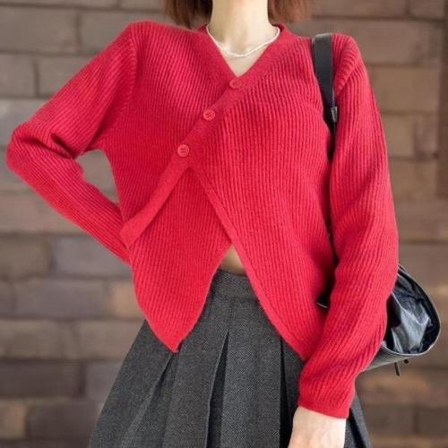[신상오픈런]|CSJ6A20|여성 사선 버튼 골지 브이넥 랩 니트 가을용 트임 가디건_23705296_597559