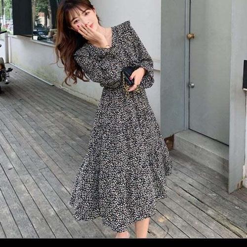 [셀럽하우스]정장 GENO7343 여성원피스 봄가을 외출복 프릴 러플 플라워 롱
