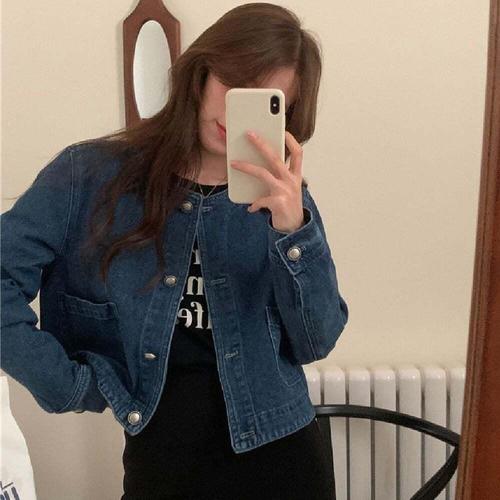 [셀럽하우스]출근룩 XHRK4437 심플한 노카라 데님 가을 외출복