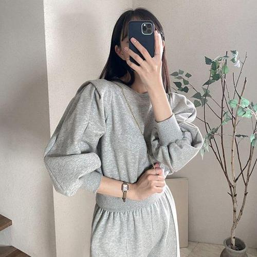 [유야]기모 무지 퍼프 소매 크롭 맨투맨 티셔츠 -TS0261H- 여성 가을 겨울 코디