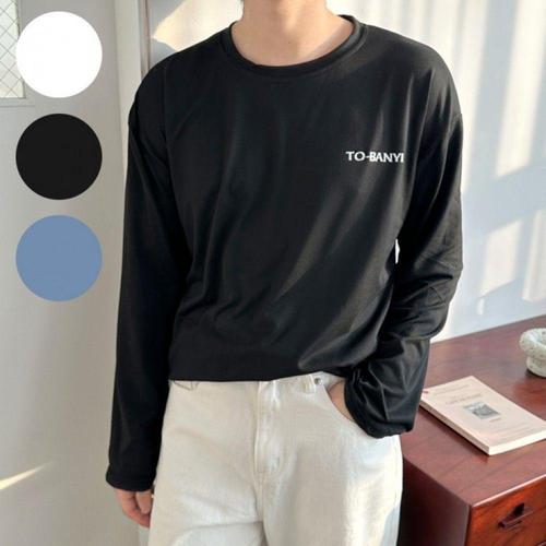 남성 데일리 라운드 긴팔 스판 티셔츠 가을 봄 이너웨어 기본 무지 WFMZVV4