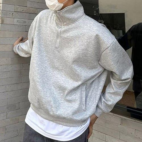 남성 하프 집업 긴팔 티셔츠 카라넥 루즈핏 데일리 이너웨어 가을 WFMZUYV
