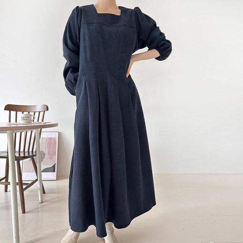 [옷자락]여자 핀턱 플리츠 스퀘어넥 가을하객룩 포켓 롱원피스