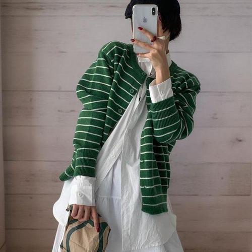 순수 캐시미어 오픈 가디건 여성용 가을 겨울 신상 니트 스트라이프 스웨터 따뜻한 베이스 레이어 다용도