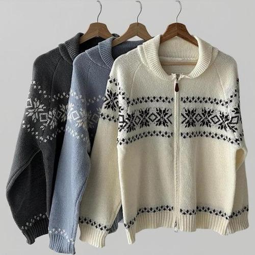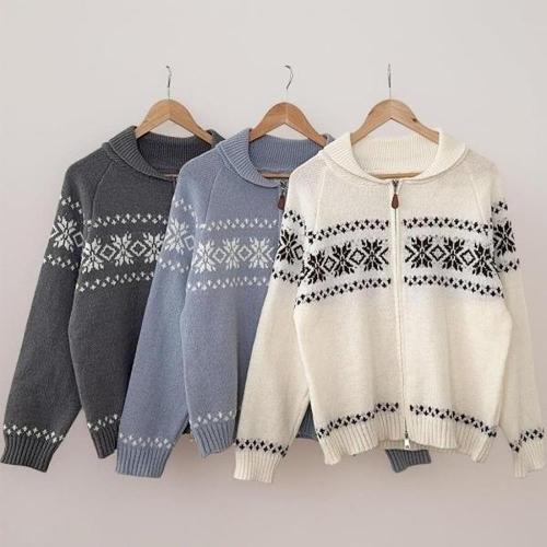 [신상오픈런]|CSJ679F|여성 눈꽃 패턴 노르딕 카라넥 투웨이 집업 가을 니트 가디건_22934272_597559