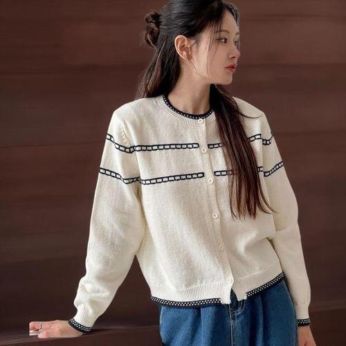 [신상오픈런]여성용 배색 라운드넥 기본핏 가을 니트 가디건