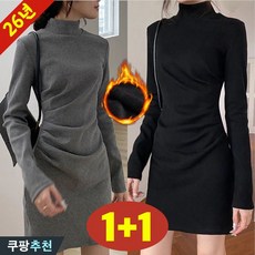 (25년 신상) 1+1 날씬해보이는 여성 터틀넥 기모 허리꼬임 이너 원피스 가을 겨울 편한 슬림핏 셔링 디자인 핏 예쁜 고급스러운 우아한 검정 매력 타이트한 베이직 힙업 원피스