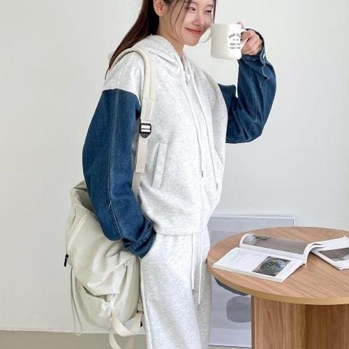 [신상오픈런]|CSD20D2|여자 배색 후드 집업 긴팔 긴바지 가을 트레이닝 세트_18609901_597559