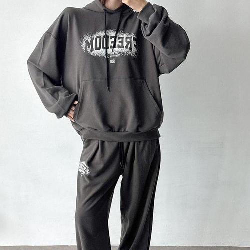 [신상오픈런]여자 가을후드티 포켓 프린팅 카큰녀 츄리닝바지 세트