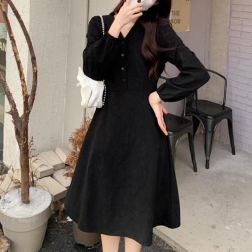 여성 봄 가을 겨울 빅사이즈 데일리룩 롱원피스 코듀로이 보온 원피스