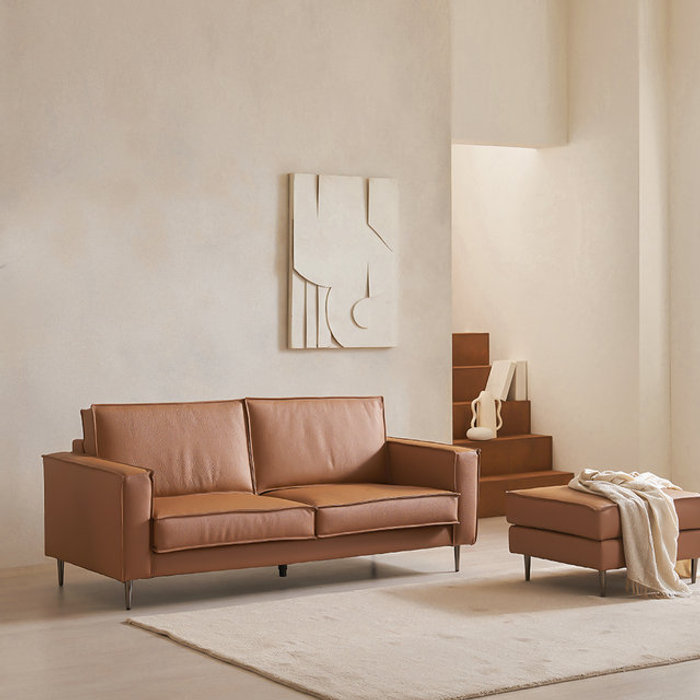 비앙스 로니 슬림 2인 가죽 소파(스툴포함)