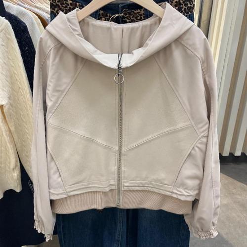 [숲]반 후드 페이크 레더 크롭 점퍼(SBXLE2F1)_DG