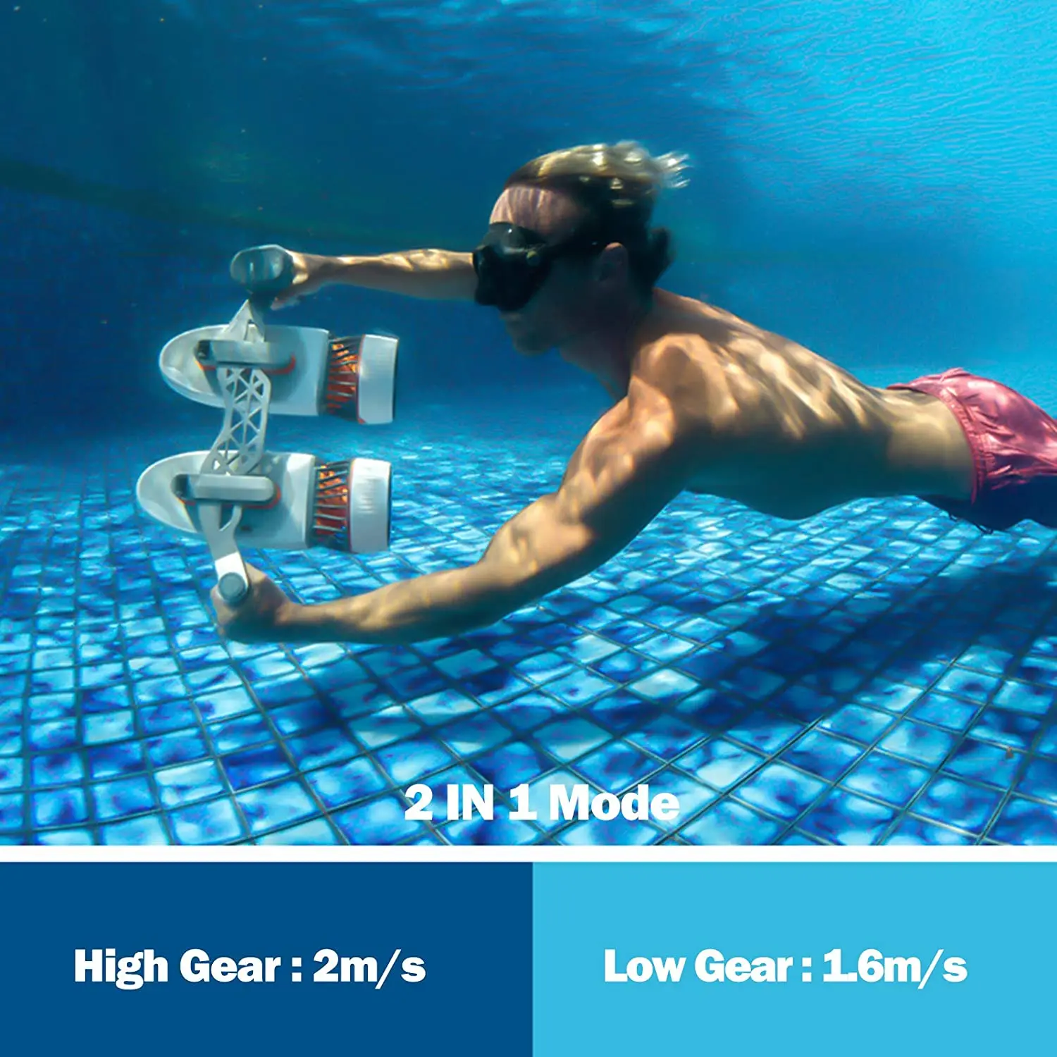 카몰레치 티니 듀얼 모터 수중 스쿠터 – 액션 카메라 장착, 수영장 놀이 및 스쿠버 다이빙에 이상적