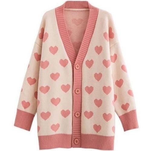 [엄지척]패턴 간절기 하트 아우터 가디건 루즈핏 니트 여성_19874122_667501