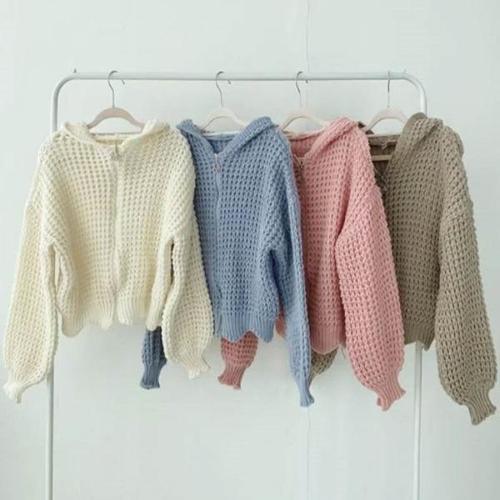 [엄지척]골지 간절기 집업 여성 니트 후드 슬림핏 아우터_19874023_667501