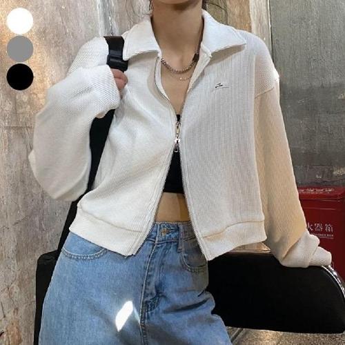 [엄지척]투웨이 집업 가디건 와플 아우터 간절기 여성 카라_19873637_667501