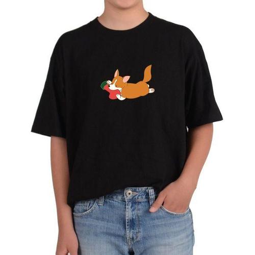 [에이치플러스몰]길단 반팔 USA핏 강아지 친구 꽃길만 걸어라 뛰어노는 강아지그림 다양한색상 전사이즈