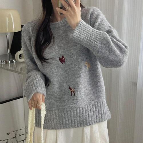 [다잇템]여성 스웨터 강아지 라운드 라글란 귀여운 울