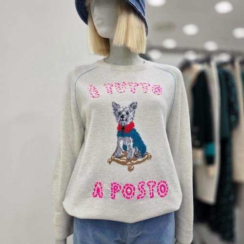 [옷자락] 여성 러블리 강아지 자수 니트 나그랑 라운드 가을 울