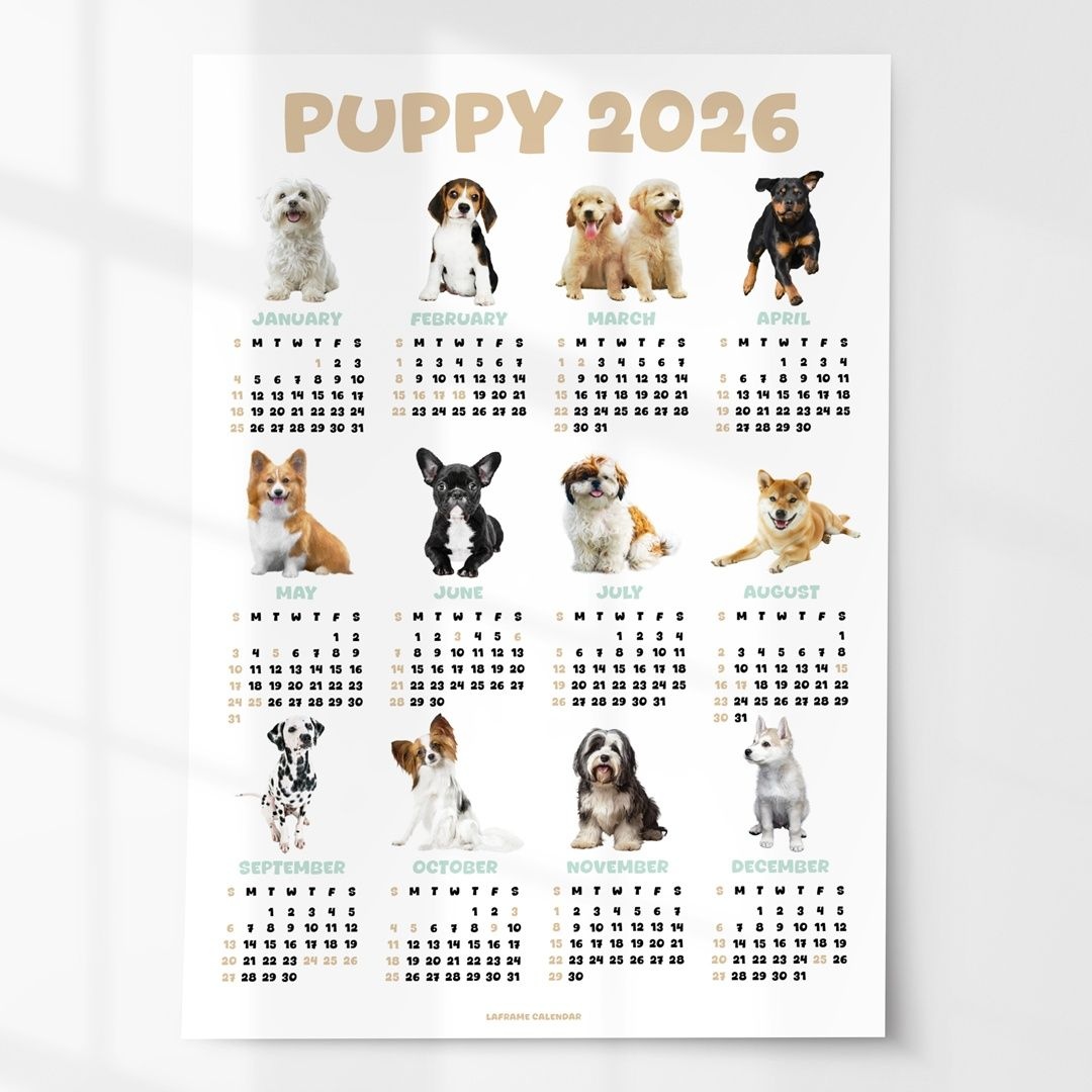 2+1 2026년 인테리어 달력 포스터 액자 한장 연력 캘린더 벽꾸미기 - 퍼피 강아지