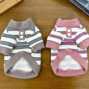 반려견 심플 줄무늬 디자인 목폴라 의류 스타일 애견 강아지 터틀넥 긴팔 티셔츠 부드러운