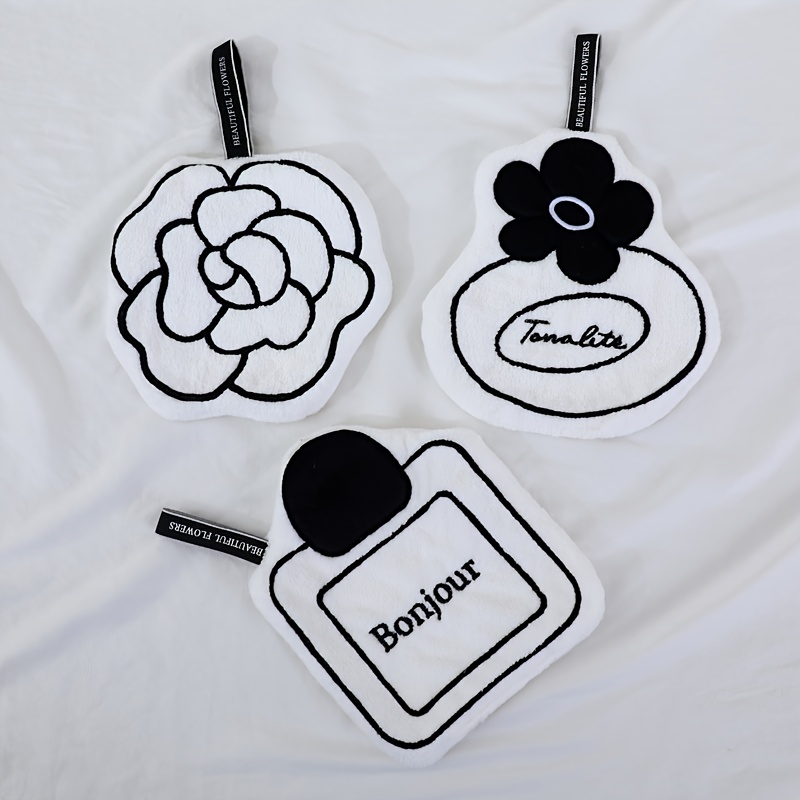 TEMU 3pcs 세련된 프랑스식 카멀리아 꽃 주방 수건, 걸이 루프가 있는 방수, 현대적인 블랙 앤 화이트 디자인, 주방 수건, 주방용 수건