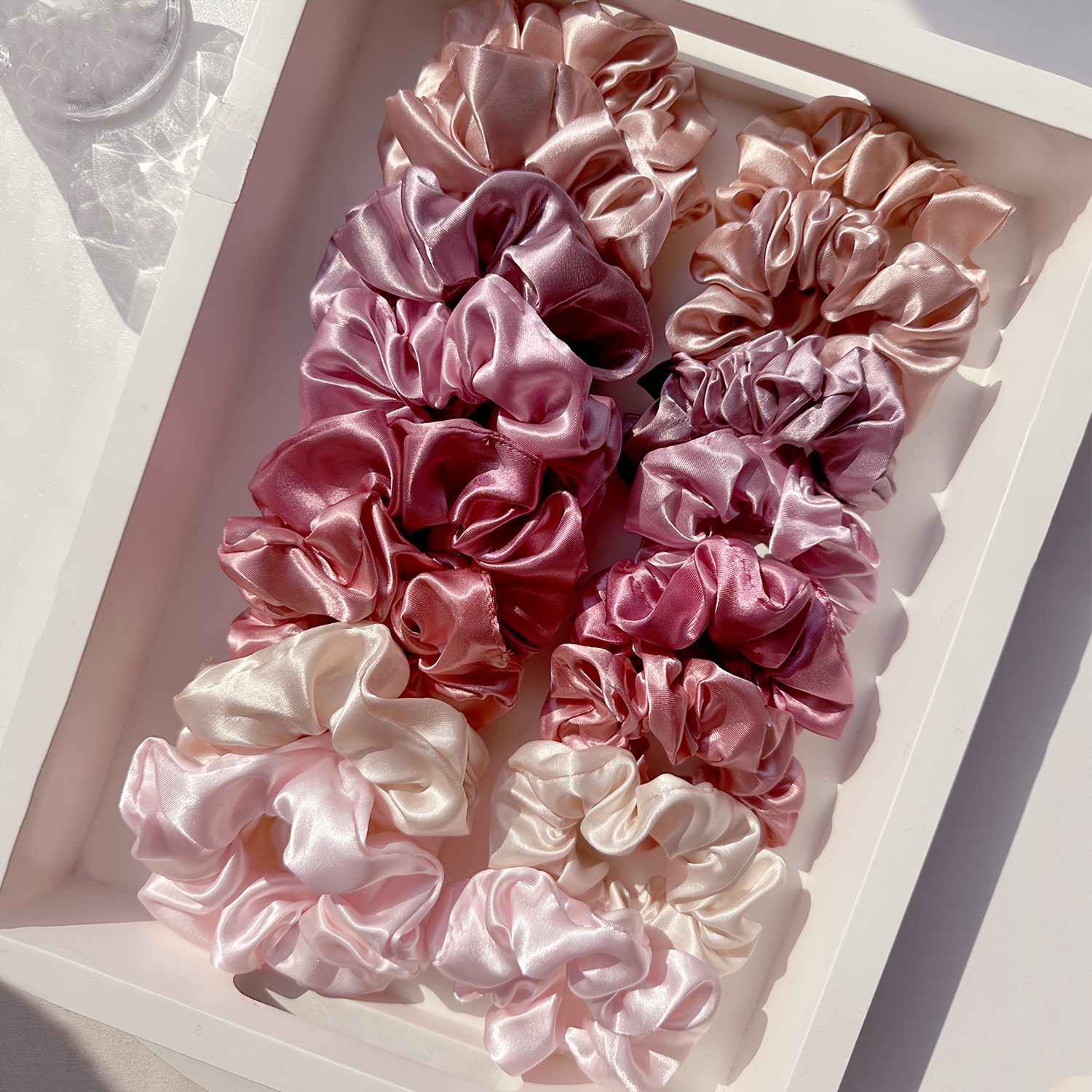 TEMU 여성용 소프트 새틴 스크런치 16개 세트 - 핑크, 퍼플 및 베이지의 고신축성 단색 헤어 타이, 캐주얼 또는 포멀한 행사에 어울리는 보호-시크 헤어 액세서리