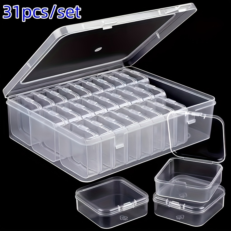TEMU 31개 지속 가능한 플라스틱 보석 정리함 세트, 작은 보관 용기 포함 - 비즈, 보석, 액세서리용 직사각형 모양 - DIY 보석 보관, 이상적인 데이 및 여성 선물, 보석 상자, 보석 상자