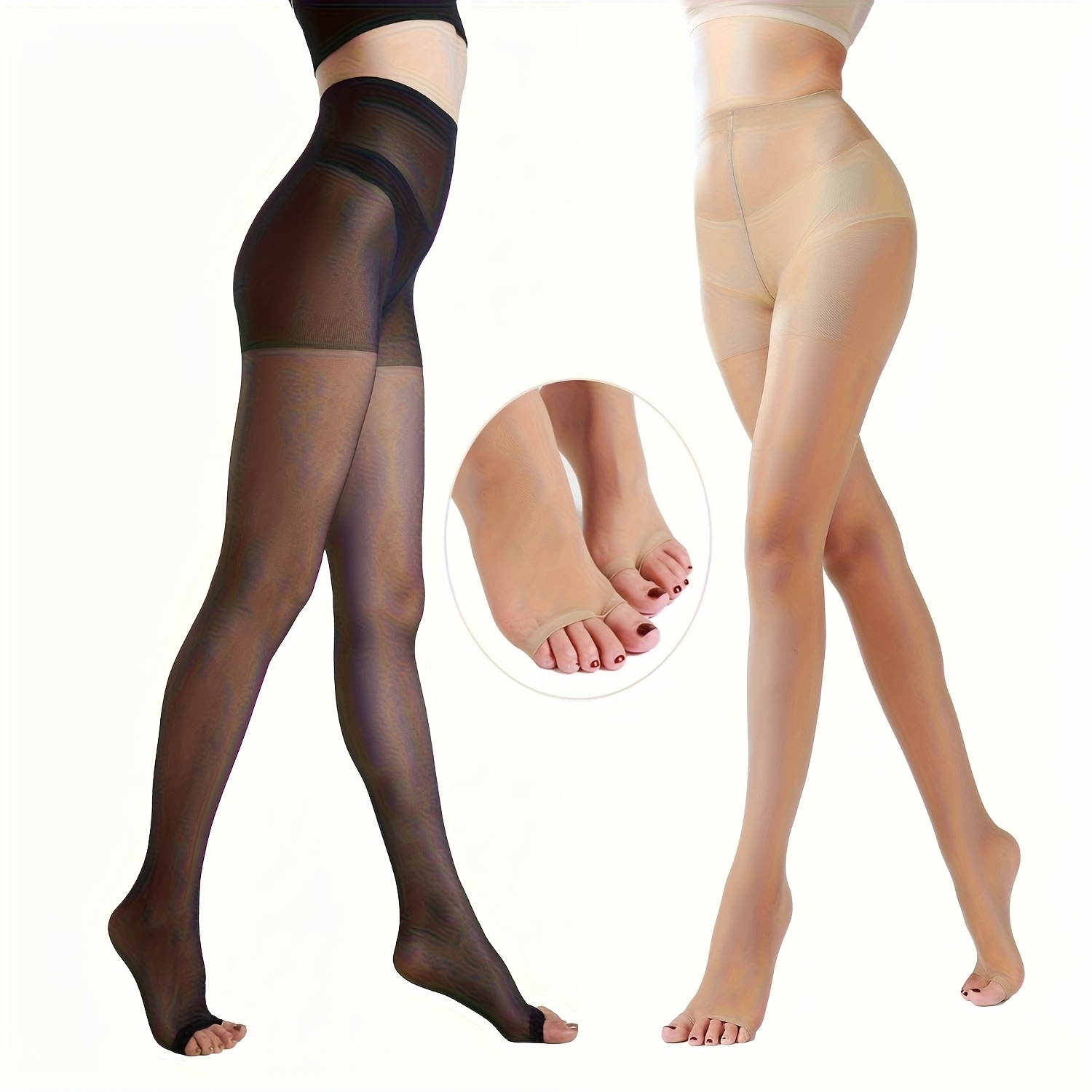 TEMU 2개 세트 우아한 여성용 시스루 타이츠 - 하이웨이스트 가터 바디스타킹, 오픈토 디자인, 얇은 스타일