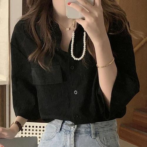 [엄지척]여자 베이직 카라 셔츠 검정색 회사 출근룩 오피스룩_19644133_667501
