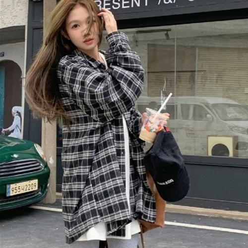 [브이와이][VY] 여자 검정 FW 격자 셔츠 우븐 분홍 카라 셔츠_15548674_588847