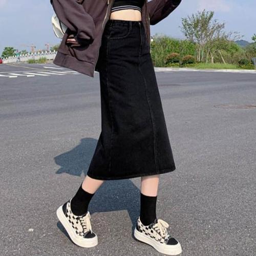 [오너클랜]인기상품 여학생 심플 검정 블랙 진스커트 롱스커트 데님 치마 [WDB68CF_250916]