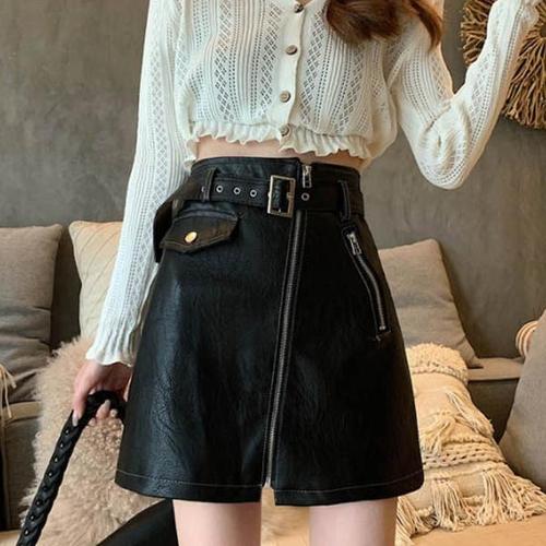 [오너클랜]인기상품 A라인 가죽치마 벨트 지퍼 포인트 A치마 검정 스커트 [WB3A116_250918]
