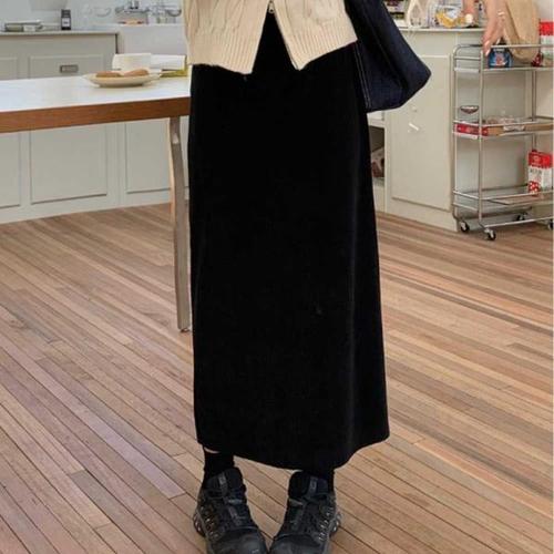 [오너클랜]인기상품 여자 데일리 출근 룩 겨울 기본 밴딩 검정 롱 스커트 [WFGAJ62_250917]