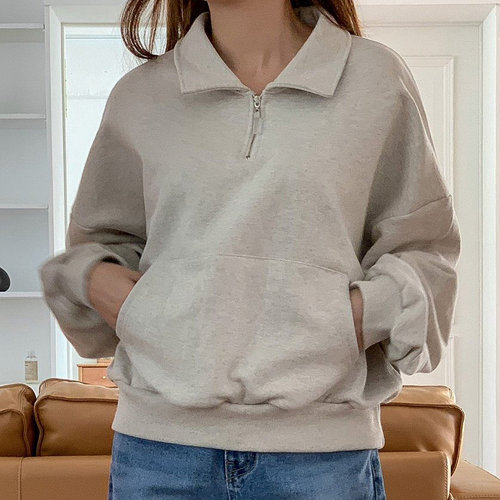 [다잇템][다잇템] 여자 터틀넥 박시핏 오링반집업 코튼 보온 벌룬 티셔츠_18954846_588872