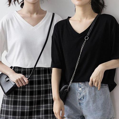 [에이치플러스몰]여성 여름 브이넥 무지 반팔 기본 티 셔츠 2P 세트