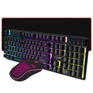 블루핑거 RGB 게이밍 키보드 및 백라이트 마우스 콤보 USB 유선 노트북 PC 컴퓨터 게임 작업용 LED 세트